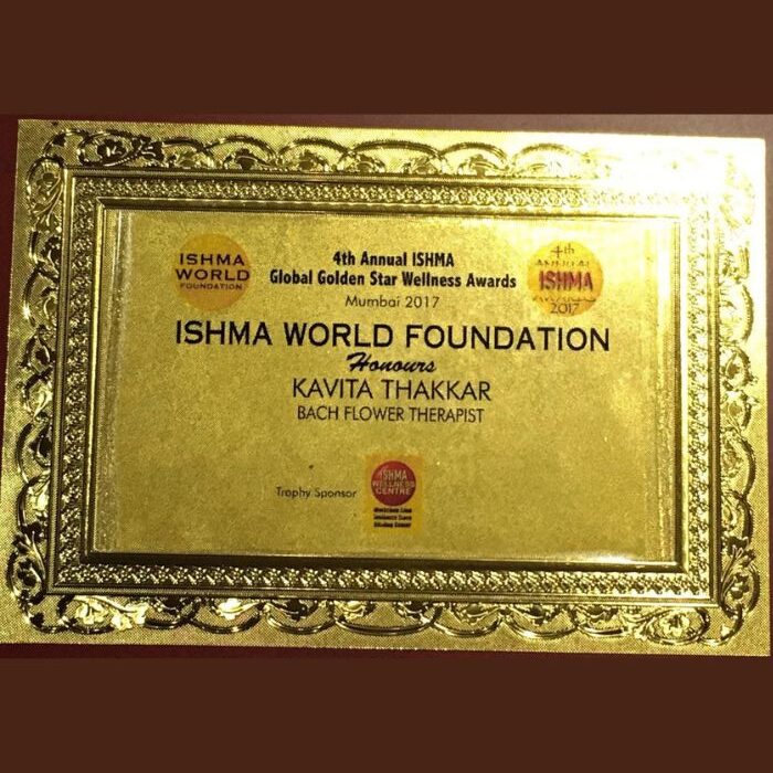 Kavita Thakkar received the Bach Flower Therapist of the Year 2020 award for her excellence in emotional healing.