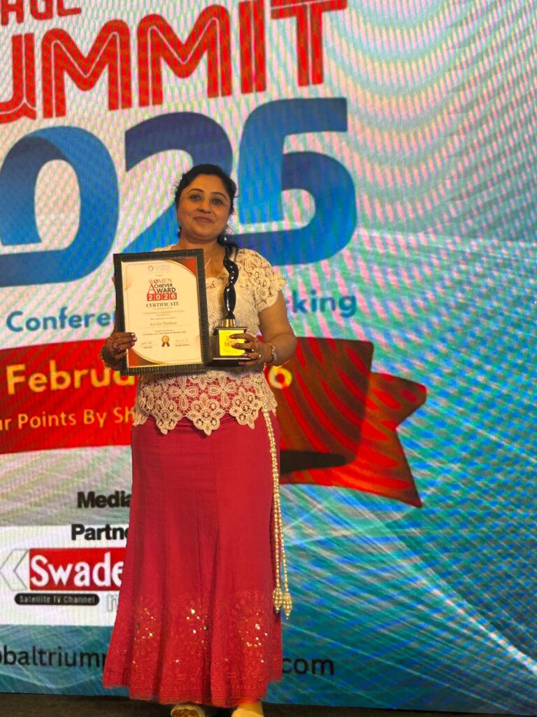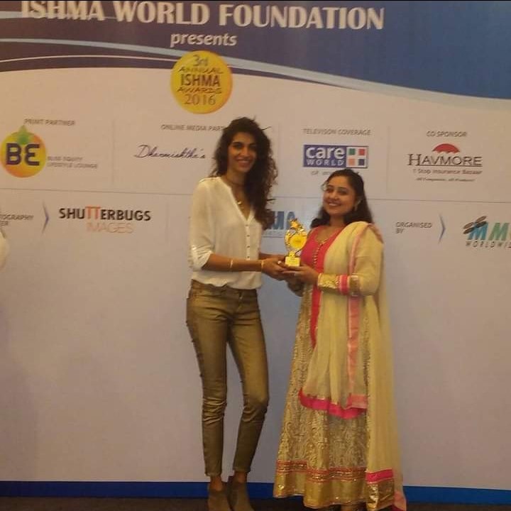 Kavita Thakkar received the prestigious ISHMA World Foundation award for excellence in emotional healing and therapy, presented by a singer.